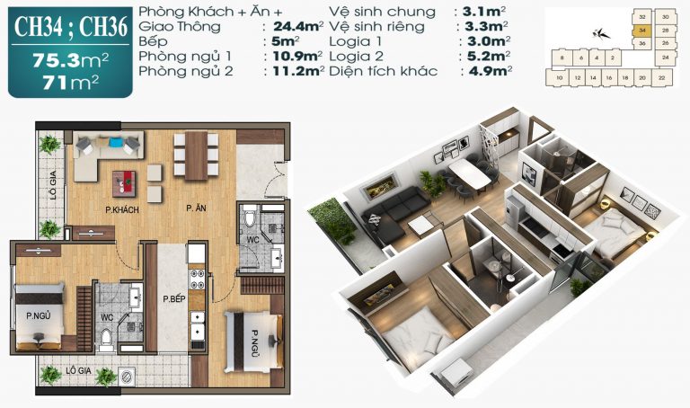 Các căn hộ được thiết kế đa dạng, từ 2 đến 4 phòng ngủ ngoài ra còn các căn Penhouse ở tầng 23, 34. dành cho những khách hàng muốn có 1 cuộc sống thượng lưu.