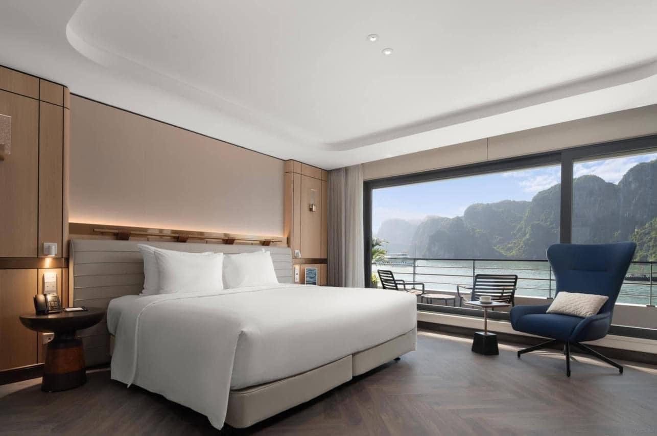 Siêu du thuyền 6 sao Grand Pioneers Cruise tại Hạ Long, Với 55 phòng nghỉ có tầm nhìn hướng biển trang nhã, sang trọng và tiện nghi, Grand Pioneers Cruises không chỉ mang đến cho du khách không gian nghỉ dưỡng tuyệt vời, mà còn giúp du khách đánh thức các giác quan, chữa lành tâm trí và hoà mình với thiên nhiên trong suốt hải trình.
